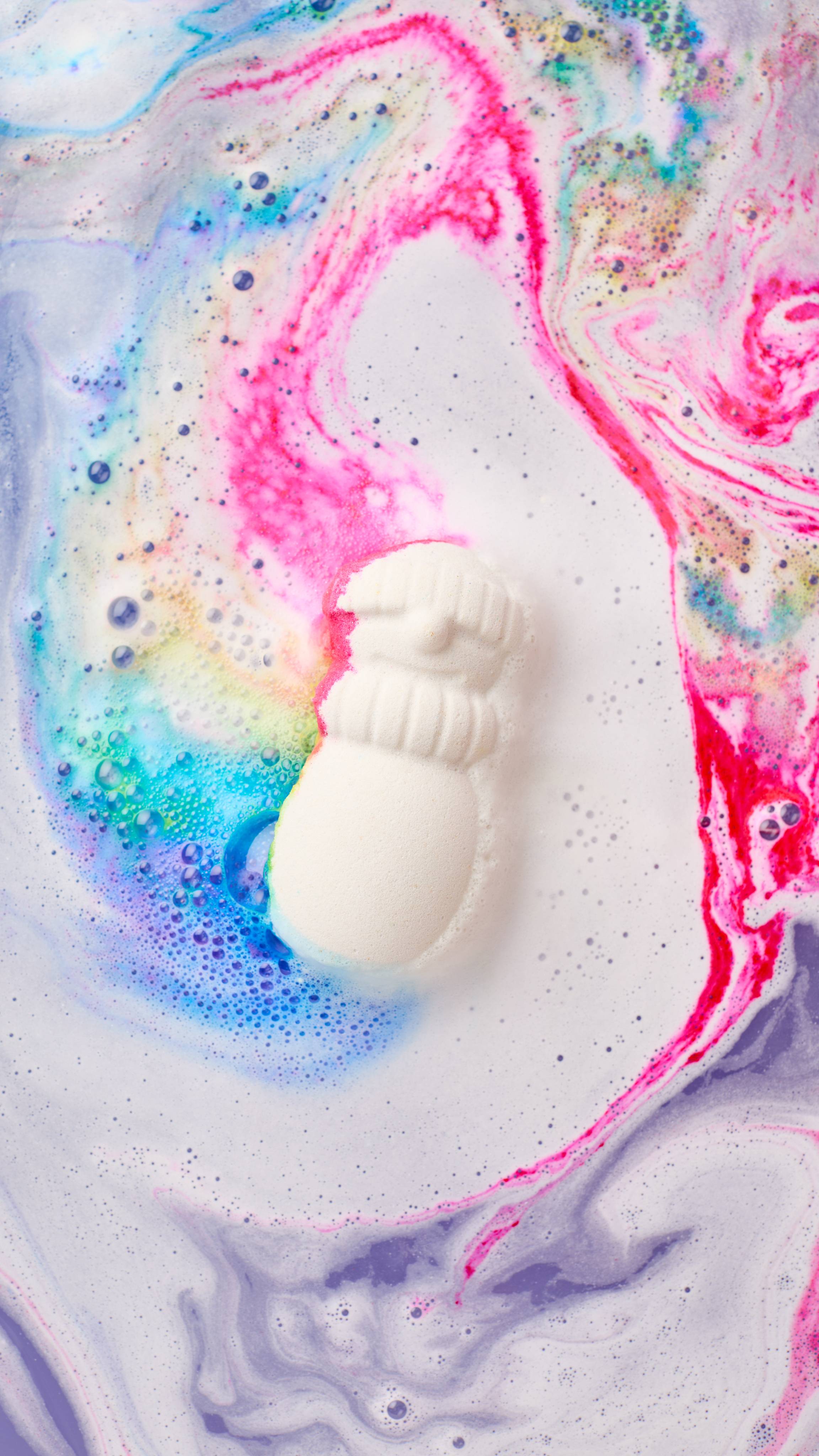 Of what does the snowman dream? Well, this snowman dreams of silky-smooth coconut milk water, rainbow bath art and a delicate blend of grounding cedarwood and relaxing lavender oils. It’s the stuff Christmas dreams are made of.